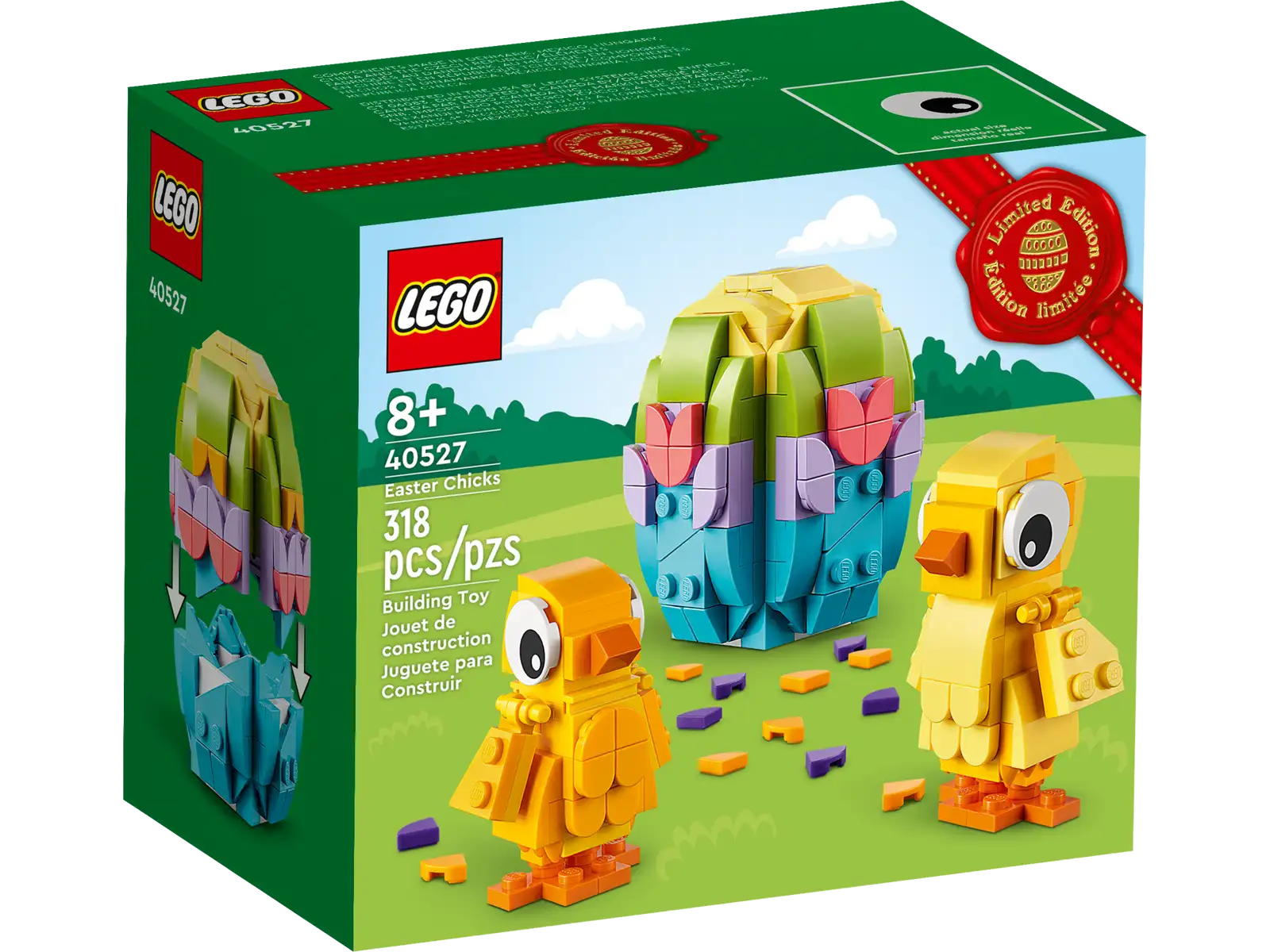 Celebrate Easter with a beautiful LEGO® Easter Chicks building kit. Includes 2 cute Easter chicks in different sizes plus a buildable, decorative Easter egg that separates into 2 pieces. Comes with extra tiles for customization.