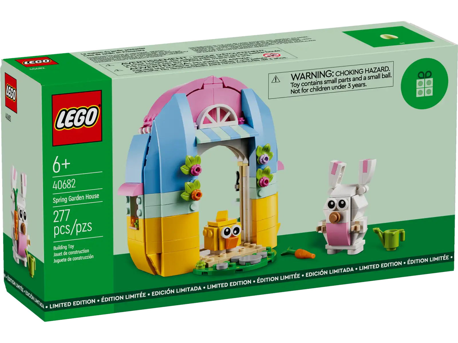 Hop into building fun with this LEGO® Spring Garden House (40682) Easter toy for kids aged 6 and up. With a colorful egg-shaped garden house and 2 adorable animal figures, creative kids will love building the house and getting acquainted with the bunny and chick toys before exploring all the fun accessories. They’ll delight in discovering the Easter egg, as well as the flowers and watering can elements, and can enjoy hours spent playing out nature-inspired scenes.