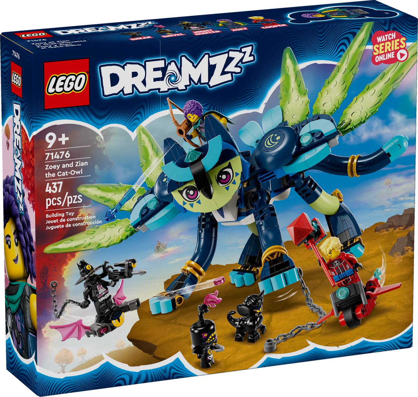 This set has story-led building instructions and 2 exciting building modes so kids can immerse themselves in the dream world adventure and enjoy double the playtime. Their imaginations will take flight as they build Zian as a Cat-Owl with wings to fly away from the nightmares or as a Cat-Peacock with a beautiful tail to fight them off.