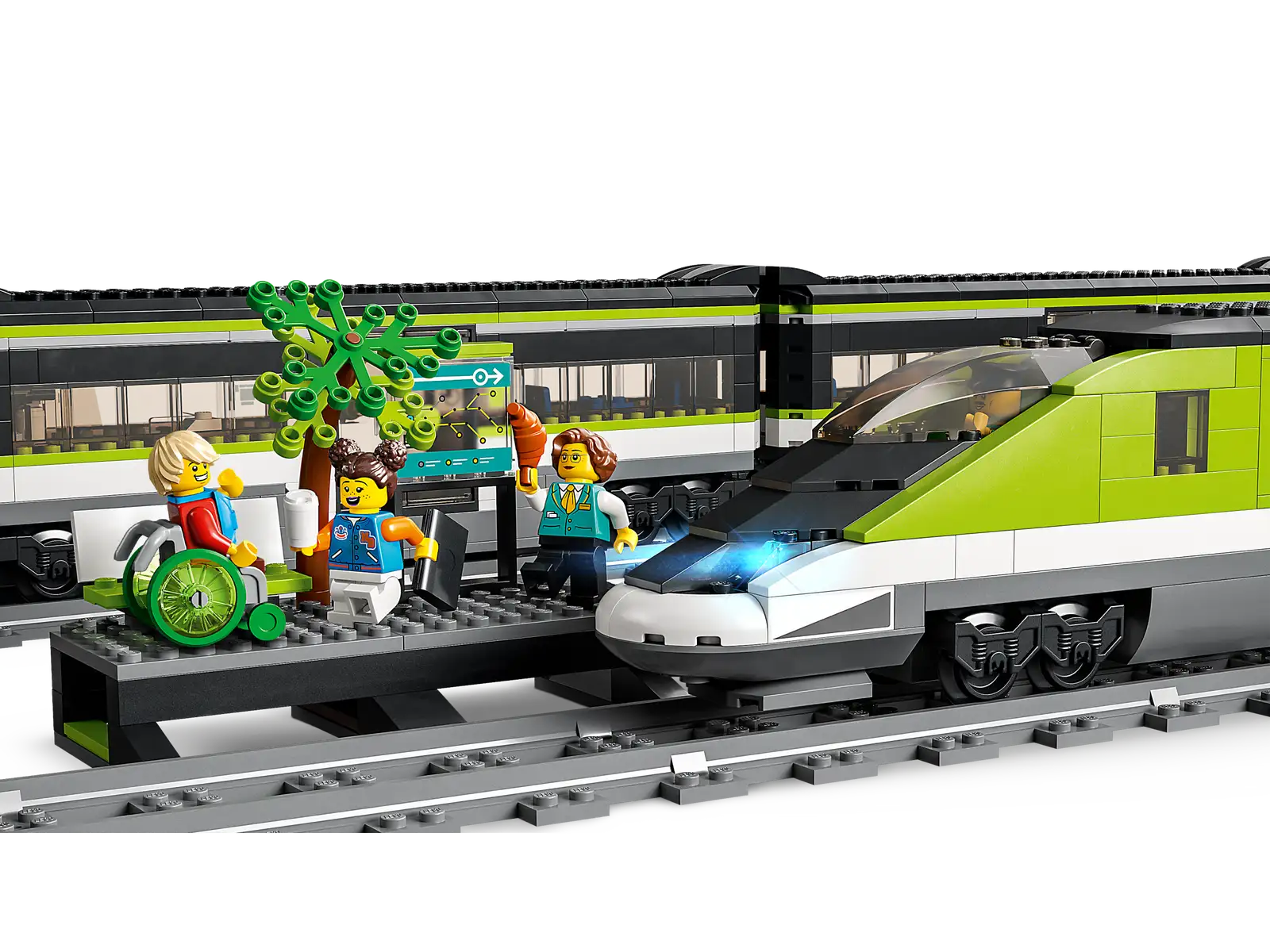 The LEGO® City Express Passenger Train set (60337) has arrived with an awesome build-and-play experience for kids and fans of toy trains. This premium playset includes a sleek remote-controlled bullet locomotive with LEGO Powered Up technology and dimmable headlights. This high-speed train toy building set also features a dining car, a passenger car, 24 track pieces and a station platform with wheelchair and bicycle accessibility, plus train driver, attendant and 4 passenger minifigures for role play and storytelling.
