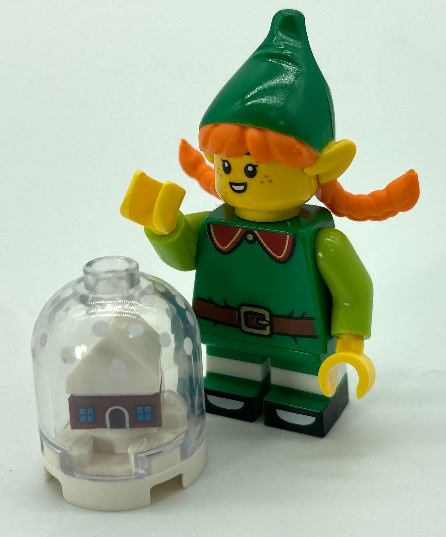 This little elf is tasked with delivering a snowglobe. However, this may prove to be a bit difficult. The snowglobe is almost as tall as her!